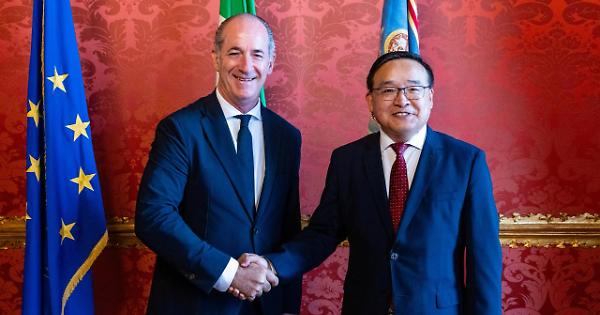 Il presidente della Regione Veneto, Luca Zaia, ha ricevuto oggi a Palazzo Balbi l’ambasciatore della Repubblica Popolare Cinese in Italia, Jia Guide. L’incontro, in occasione della presentazione del nuovo volo diretto tra Venezia e Shanghai, che consoliderà ulteriormente i rapporti tra le due realtà, avviene in una data estremamente simbolica. Quest'anno segna, infatti, i settecento anni dalla morte di Marco Polo, il celebre esploratore veneziano, ricordato per aver aperto le vie commerciali con l’Oriente.