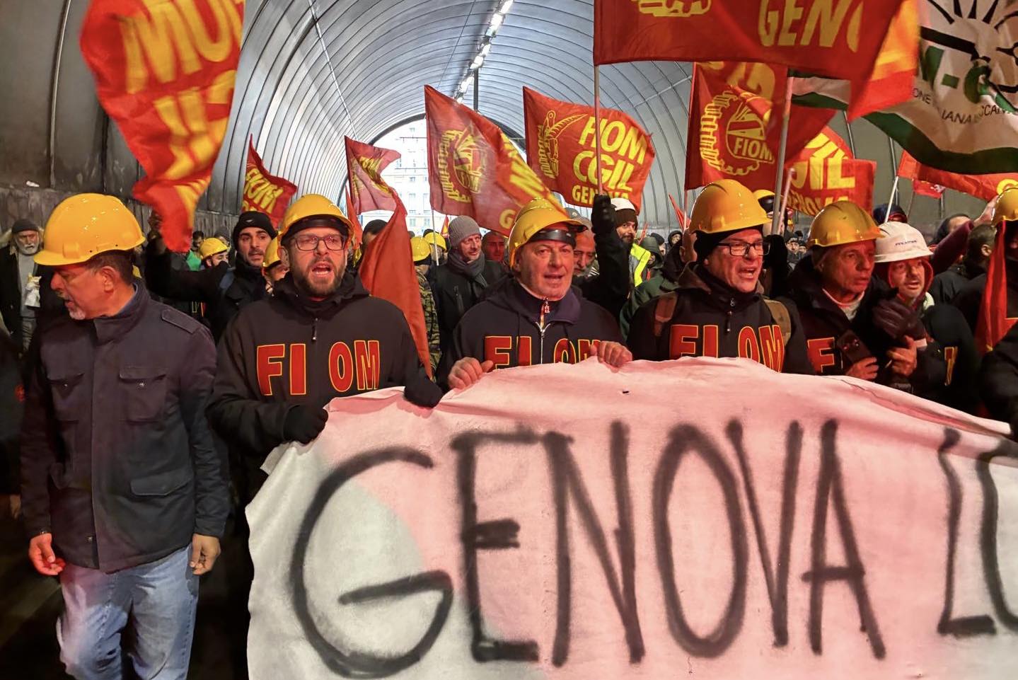 Genova, Cinquemila operai, in marcia da Cornigliano verso il centro, hanno trovato la Prefettura serrata dietro grate e blindati. Un’immagine che colpisce: lo Stato, “fondato sul lavoro” chiuso a difesa di sé stesso, mentre i lavoratori chiedono di essere ascoltati. Il lancio simbolico di uova e fumogeni ha preceduto la risposta della polizia, che ha sparato lacrimogeni anche ad altezza d’uomo, ferendo un operaio Fiom.