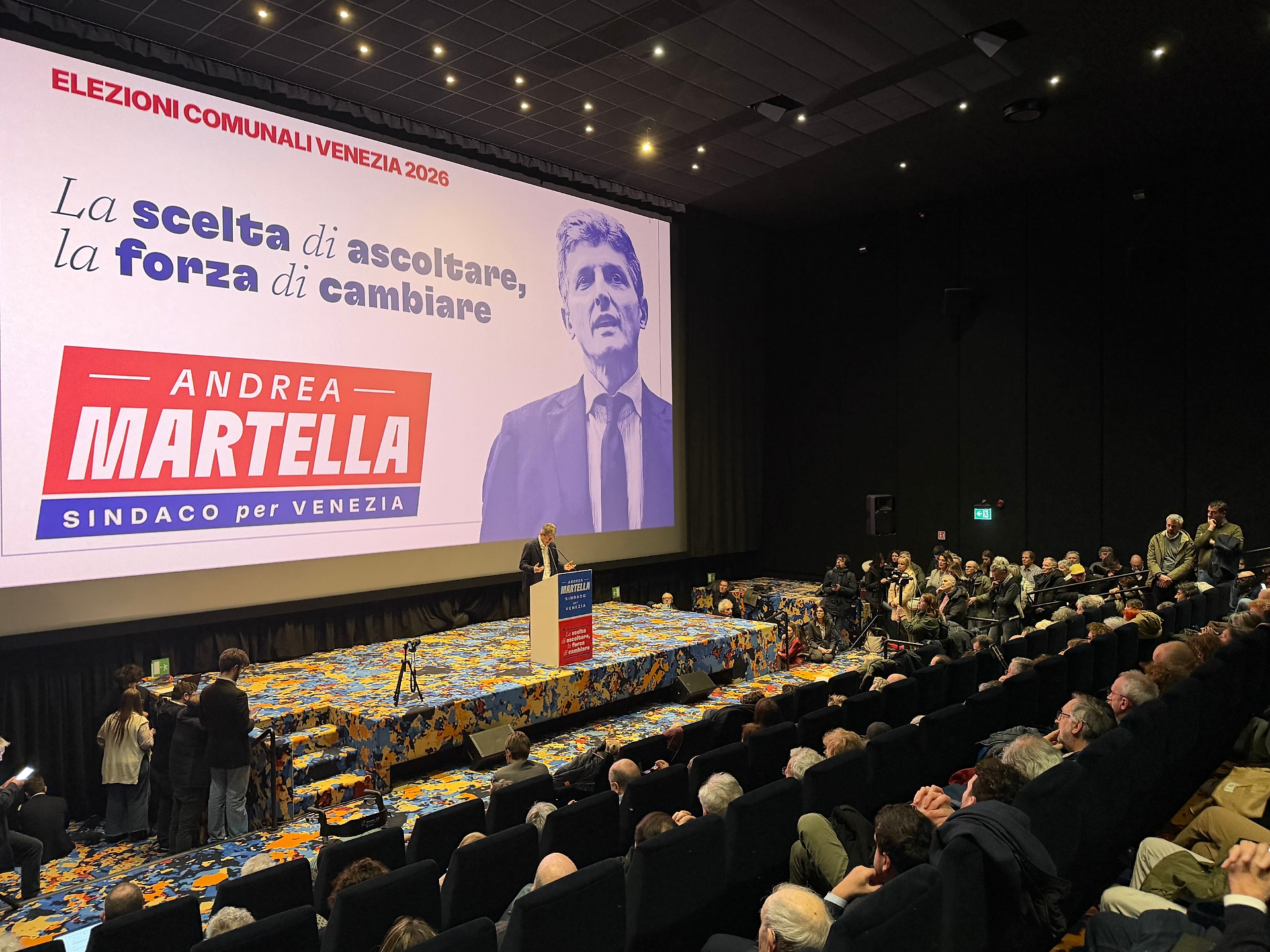 «Venezia deve tornare a credere in se stessa. Deve riscoprire i suoi spazi, creare occupazione e riscoprire il senso di comunità. Non accetto che la città si adatti al declino come fosse inevitabile: non lo è, e non lo sarà». Con queste parole forti Andrea Martella ha dato ufficialmente il via alla sua campagna elettorale, presentandosi davanti a oltre 400 persone all’IMG Cinema Candiani di Mestre.