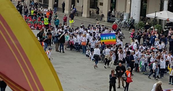 Grande entusiasmo e tanta partecipazione alla “Marcia della Pace”. L'iniziativa, promossa dall'Istituto comprensivo Rovigo 2, si è tenuta questa mattina nelle vie del centro cittadino per concludersi in piazza Vittorio Emanuele II, tra colori e canti con gli immancabili “Inno nazionale” e “Inno alla gioia”. Quello di oggi è stato l'evento conclusivo di un percorso sul significato della pace portato avanti nelle scuole. Alla manifestazione hanno collaborato gli istituti scolastici cittadini, aderenti al Progetto Educativo “Noi bambini per la pace”, che quest’anno compie 25 anni. La marcia è stata patrocinata dall’assessorato al Turismo, Manifestazioni ed Eventi del Comune di Rovigo con il coinvolgimento del Consiglio Comunale dei Ragazzi (CCR). Altri partners patrocinanti dell’evento sono stati: UNICEF e le associazioni del territorio PEDIBUS e USACLI.