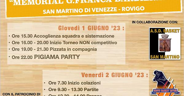 La prima edizione del torneo, che gode dei Patrocini del Comune di San Martino di Venezze (Ro) e del Comitato Regionale Veneto FIP, prevede due giorni di puro divertimento, con partite (non competitive), pizzata in compagnia e pure il pigiama party della notte del 1 giugno. Nel tempo libero, ci sarà la possibilità di usufruire del campo da basket esterno e del parco comunale adiacente alla palestra. L’evento è reso possibile grazie all’unione di Nuovo Basket Rovigo e Basket San Martino, e alla Pro Loco di San Martino di Venezze, che gestirà le colazioni, pranzo e merenda. Nelle prossime settimane saranno comunicate le squadre partecipanti, che arriveranno anche da fuori provincia e regione.