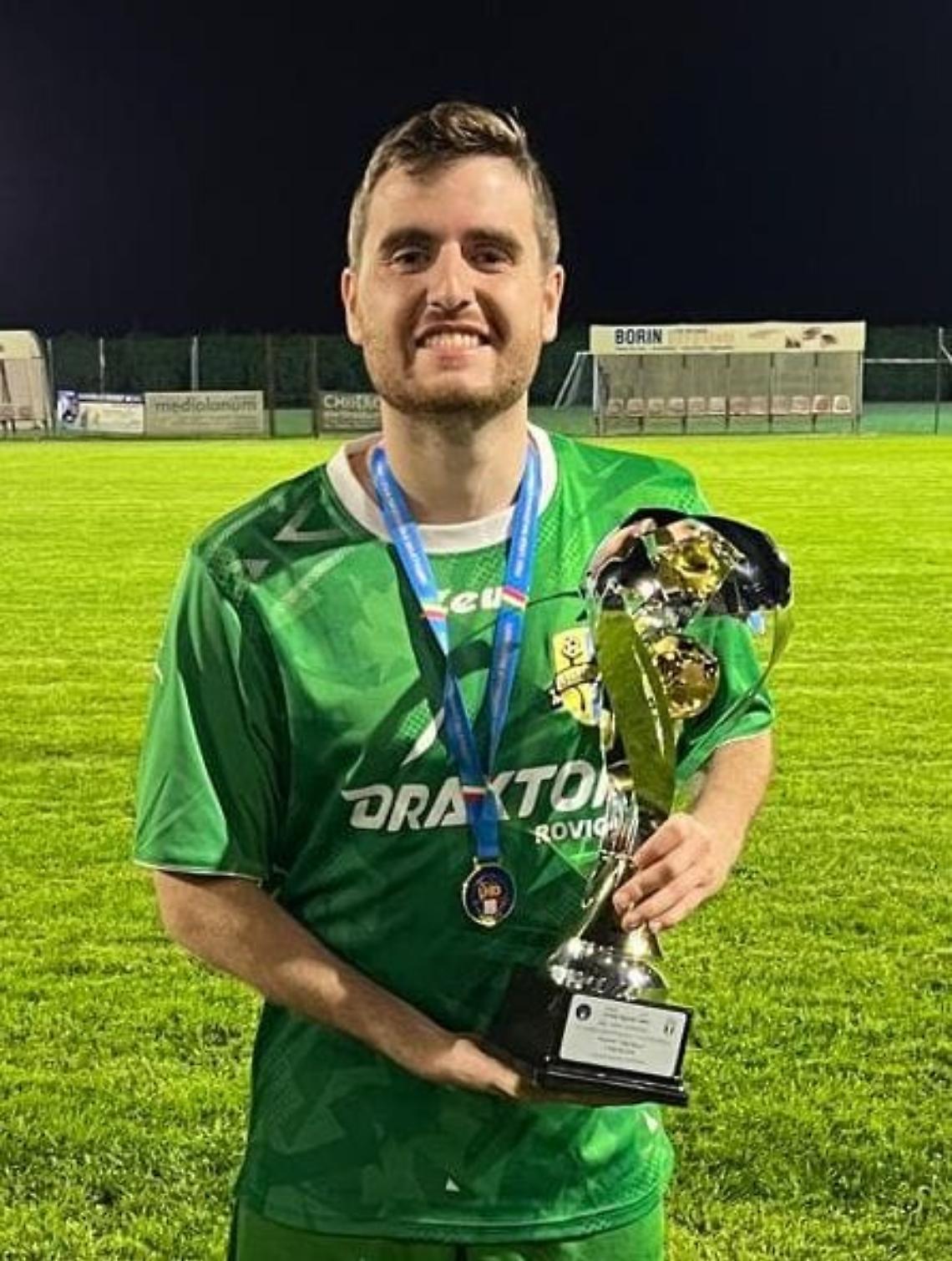 Daniele Moretto col trofeo veneto vinto in finale contro la Ficarolese nel 2024