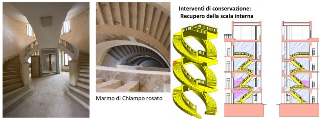 Il progetto interessa complessivamente 2.559 metri quadrati, distribuiti su cinque livelli, dal piano interrato alla copertura, e sarà realizzato in due stralci funzionali: Il primo stralcio (4 milioni di euro) riguarderà il consolidamento strutturale e il restauro dei prospetti esterni, oltre alle opere interne dei piani interrato, terra e primo. Il secondo stralcio (1,34 milioni di euro) completerà le finiture e gli impianti dei piani superiori e del cortile interno, con interventi mirati all’efficientamento energetico, al rifacimento dei bagni, dei pavimenti e dei serramenti.