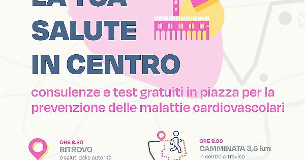 L'Ulss 2 Marca Trevigiana organizza domenica 22 settembre a Treviso "La Tua Salute in Centro", un evento gratuito dedicato alla prevenzione delle malattie cardiovascolari. La giornata, che si svolgerà in piazzale Burchiellati, prevede una camminata non competitiva e una serie di consulenze mediche e test gratuiti.
