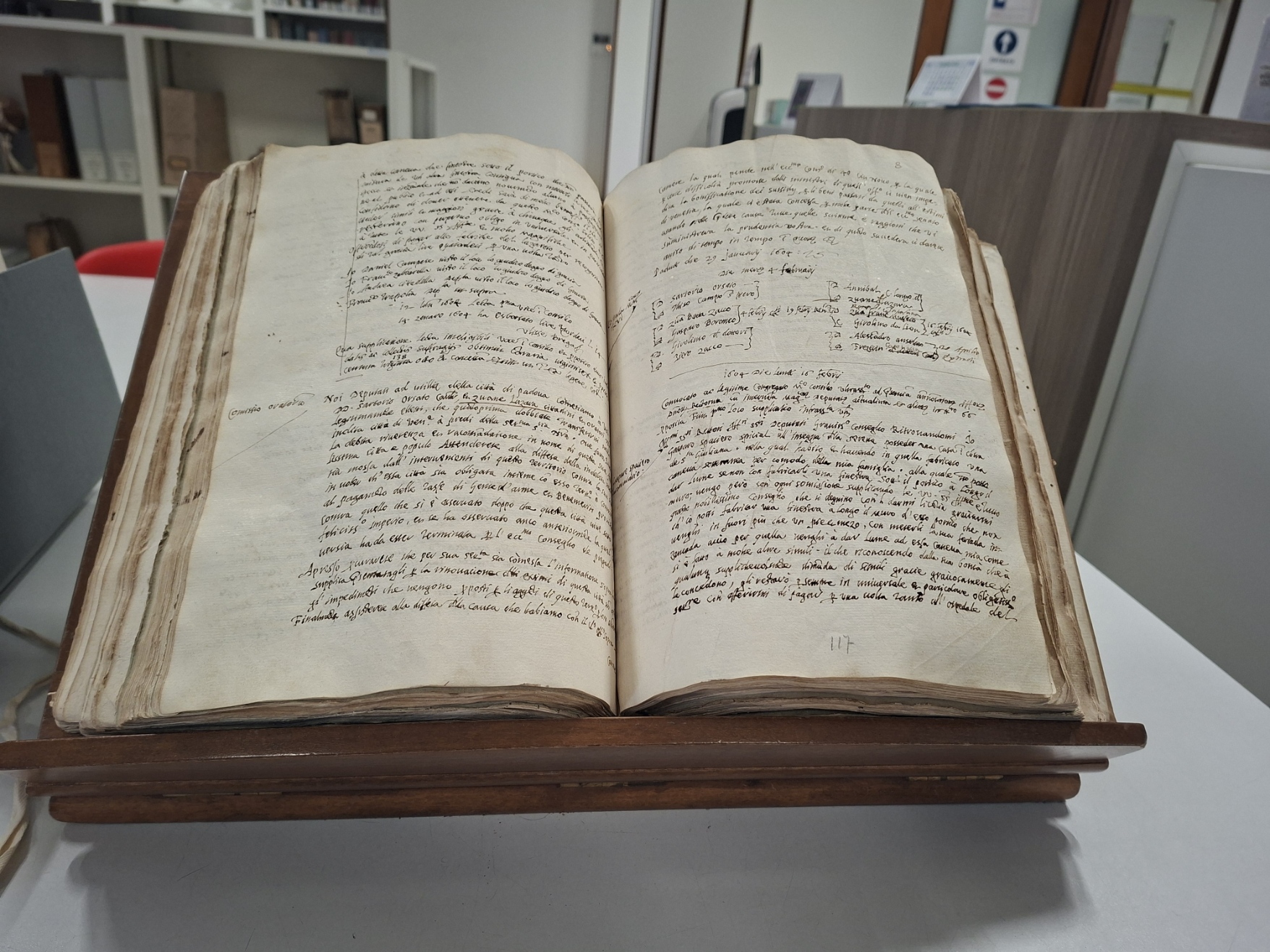 Il manoscritto, redatto dalla cancelleria cittadina, descrive la deliberazione del Consiglio di Padova e cita esplicitamente i formati di pasta: bigoli, menudelli, lasagne e macaroni. Al di là della semplice attività produttiva, l’atto riconosce l’innovazione tecnologica e concede un privilegio quinquennale che ne favorisce lo sviluppo.