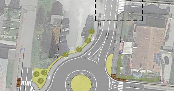 La nuova rotatoria sulla provinciale a Bagnoli con il dettaglio del semaforo pedonale