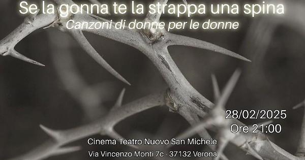 In occasione della Giornata Internazionale dei Diritti delle Donne, Il teatro San Michele di Verona si prepara a ospitare un evento speciale intitolato “Se la gonna te la strappa una spina”. Questa serata musicale, che si svolgerà venerdì 28 febbraio alle ore 21 presso il Cinema Teatro Nuovo, è il primo di una serie di eventi pensati per celebrare e riflettere sui diritti delle donne.