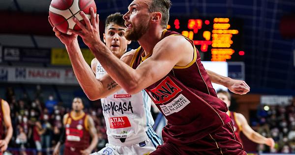 Ci vuole un overtime, ma l’Umana Reyer riesce a battere anche l’Happy Casa, nel recupero del 16° turno: 80-78 il finale che allunga a 7 vittorie nelle ultime 8 giornate la striscia degli orogranata. L’avvio è difficile, per gli orogranata: time out al 2′ sullo 0-8, poi proprio Cerella sblocca al 3′ (2-8), ma Brindisi a metà quarto è avanti 2-13, dopo l’ingresso in campo di Morgan (esordio in campionato) e Tonut, che muove il punteggio al 6’30” (3-13), prima che l’Happy Casa tocchi il 3-19 al 7’30”. E’ ancora Tonut, con un canestro e 4/4 dalla lunetta, a limare qualcosa, con le squadre al primo intervallo sul 9-21. De Nicolao (canestro e tripla) e Mazzola (su assist di Tonut) firmano il 16-23 al 12’30” per un’Umana Reyer che deve attendere il 14′ per il primo canestro di uno straniero (tripla di Stone per il 19-25). Con una difesa più arcigna e con Watt che si sblocca anche in attacco, a metà quarto è 21-25, poi di nuovo De Nicolao trova il 23-25. Brindisi si riporta subito a +7, mantenendo il distacco fino al 27-34 del 18′. Il finale di periodo è però dell’Umana Reyer, con l’and one di Theodore, altri 2 di Tonut e, soprattutto il 2+2 di Echodas nell’ultima azione, quando il lituano sbaglia il libero supplementare ma raccoglie il rimbalzo e trova il 36-37 all’intervallo lungo. Il primo vantaggio orogranata arriva al primo attacco della ripresa, poi Tonut allunga sul 40-37 al 21′. Nel finale di quarto, oltre al quarto fallo anche di De Zeeuw, l’Umana Reyer porta a casa anche il canestro di Tonut, i liberi di Echodas e il canestro di De Nicolao, con la stoppata finale di Brooks che sigilla il punteggio sul massimo vantaggio: 57-53. Ma non è ancora finita: al 31’30”, gli ospiti sono di nuovo avanti (57-58) e la risposta da 3 di Tonut rimane a lungo l’unico canestro orogranata nel periodo, così si arriva al 60-64 al 33’30” e, dopo un’altra tripla, di Theodore, a metà quarto è addirittura 63-70. Nell’ultimo minuto, Gentile segna un libero a 41” dalla fine, Theodore infila in sospensione a -32” il 72-72 dopo il time out di coach De Raffaele, con i tempi regolamentari conclusi dal recupero di Brooks su Gentile e l’errore finale di Tonut. Si va così all’overtime, aperto dalla tripla di Harrison a cui risponde Tonut. Il punteggio rimane a lungo sul 75-75, poi segna Zanelli, ma anche De Nicolao, con la tripla del 78-77 al 42’30”. Perkins esce per il quinto fallo, speso in attacco, poi Gaspardo pareggia con un libero su due a 1’10” dalla fine. Sul 78-78, Watt pesta la linea di fondo, ma si rifà con la stoppata su Gaspardo e con il 2/2 dalla lunetta a -22”, che vale la vittoria per 80-78.
