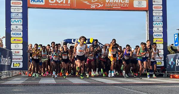 Mai così tanti, mai così veloci a Venezia. Quella che si è appena conclusa in Riva Sette Martiri è stata l'edizione dei record. Con l'inserimento della nuova mezza maratona, la manifestazione quest'anno ha salutato ben tre partenze (Stra, Mestre e Parco San Giuliano), applaudito 15.000 persone che hanno dato vita ad uno spettacolare serpentone colorato che ha coinvolto l'intero territorio della città metropolitana di Venezia e nelle scorse settimane, con le cinque tappe delle Ali Family Run, ha coinvolto 17.000 persone tra studenti e famiglie. Ma soprattutto è stata l'edizione del record della gara maschile, 2h08'10", a firma dell'ugandese Solomon Mutai che ha limato di 3 secondi il precedente primato (2h08'13") ottenuto nel 2009 dal keniano John Komen. Felicissimo il patron di Venicemarathon Piero Rosa Salva. "In 36 edizioni, devo confessare che questa è stata la più spettacolare di sempre, sotto ogni punto di vista: i numeri degli iscritti, il record della gara maschile, il numerosissimo pubblico presente lungo il percorso, le splendide immagini trasmesse dalla Rai in tutto il mondo e la grande scommessa vinta della nuova mezza maratona. L'edizione 2022 scrive una nuova ed importante pagina di storia di questa maratona. Ringrazio tutti coloro che hanno reso possibile questo straordinario risultato". Toccante è stato l'arrivo di Sammy Basso, il 27enne di Tezze sul Brenta, affetto dalla nascita da progeria, che ha percorso l'intera Maratona di Venezia assieme ai 'Sammy Runners', una trentina di amici podisti, che a turno lo hanno spinto con una speciale carrozzella a ruota unica - la Joelette - lungo tutto il tracciato. Sammy e i suoi runners hanno impiegato 4h47'. "Questa è stata la mia seconda volta a Venezia e me la sono goduta un pò di più perchè già sapevo quello che mi aspettava e quindi mi preparavo mentalmente alle emozioni. Entrare in Piazza San Marco però è un tuffo al cuore sempre fortissimo. Ringrazio i Sammy Runners per quello che sono riusciti a fare oggi, sono un gruppo straordinario". Federico Rossi, il 28enne paralimpico di Schio, reduce dalla grandissima impresa di aver raggiunto lo Stelvio in carrozzina, è arrivato al traguardo di Riva Sette Martiri stravolto ma felice. "Adoro questa gara, adoro questa città e il suo pubblico e anche questa volta mi è scesa una lacrimuccia appena siamo entrati in Laguna".