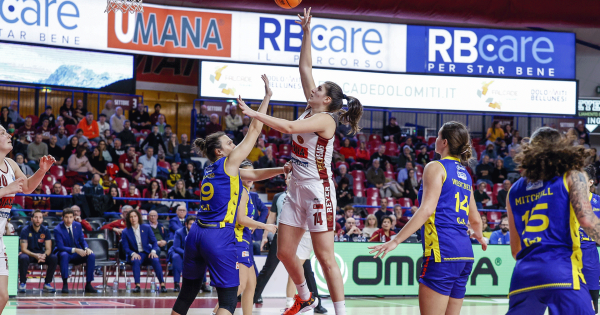 Ottima prova delle reyerine che, giocando di squadra, hanno condotto per tutti e quaranta i minuti. Tra le fila orogranata assente Jessica Shepard in riposo precauzionale e Lorela Cubaj, in panchina, ma a riposo dopo la botta presa nella scorsa partita contro Gernika. Dopo un inizio di partita equilibrato (12-11 a metà quarto), l’Umana Reyer cambia marcia e inizia a trovare il canestro con continuità approfittando poi del bonus delle piemontesi. Al termine dei primi dieci minuti di gioco sono nove i punti di vantaggio sulle ospiti, 25-16. Fassina ispirata con 8 punti a referto. Nel secondo quarto l’Umana continua a spingere toccando anche il +15. Moncalieri non molla e trova la reazione portandosi sul meno cinque grazie ad un gioco da tre di Westbeld (37-32 a 1’25”). Il primo tempo si chiude 39-32 a favore delle orogranata. Westbeld (12) e Fassina (10) già in doppia cifra. Al ritorno dall’intervallo lungo l’Umana Reyer ha l’inerzia della gara in mano continuando a tenere a distanza Moncalieri e toccando il massimo vantaggio sul 54-38. La tripla di Giacomelli sigla il punteggio di chiusura del quarto, 54-41. Negli ultimi dieci minuti di gioco le orogranata giocano sul velluto. La partita finisce 69-50. Ottima partita delle nostre leonesse che sono state trascinate da 700 cuori reyerini. Grande partita di Martina Fassina con 18 punti, 7 rimbalzi e 2 assist, in doppia cifra anche Yasuma a 10 punti. Per le ospiti c’è da registrare la doppia doppia di Westbeld con 14 punti e 11 rimbalzi. Il prossimo appuntamento sarà giovedì 15 dicembre alle ore 18.30 in casa delle tedesche del Rutronik Stars Keltern per l’ultima partita del girone di Eurocup Women.Edizione