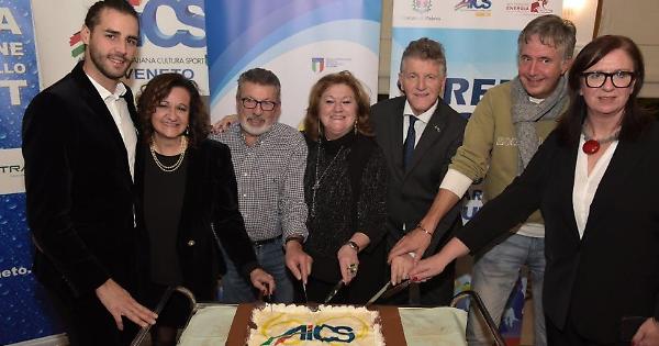 60 Anni di AICS in Veneto festeggiati con l'oro olimpico Gianmarco Tamberi, primo da sinistra
