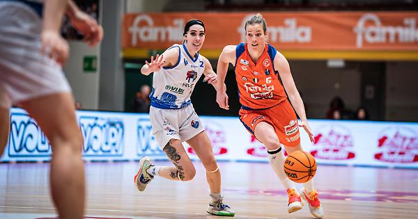 Larga vittoria per il Famila Wuber nell’anticipo della 24 giornata di Techfind Serie A1. Grazie ad un primo tempo praticamente perfetto, chiuso sul 63-23, amministriano con scioltezza la prima partita dal rientro per la sosta delle nazionali. Out capitan Sottana, colpita in settimana da influenza, in panchina solo per onor di firma, e Zahui esclusa nella rotazione delle straniere a favore di Mestdagh. Ottima prova di tutto il collettivo con un minutaggio perfettamente distribuito da coach Dikaioulakos che ha lasciato spesso le redini della partita all’assistant coach Fontana Partita che fatica a decollare con le squadre ferme sull’8-3 dopo 4 minuti di gioco. In breve, però, Schio scatena la sua potenza di fuoco con le triple di Mabrey e Ndour che valgono il 16-5. Anche Johnson segna dalla distanza per le ospiti ma trova le risposte di Mestdagh e Howard che, in scioltezza, vola già in doppia cifra: 27-8 alla prima sirena. Devastante l’uragano orange che si abbatte nel secondo quarto sulle malcapitate avversarie: con le triple di Verona, Mestdagh e Penna al 14’ il punteggio è già 42-14. Johnson prova a caricarsi le sue sulle spalle ma, anche quando concretizza un gioco da 4 punti, arrivano le risposte dall’arco di Mabrey e Howard. Il Famila difende aggressivo, fa girare meravigliosamente palla e vola su un parziale record di 63-23. Negli spogliatoi coach Zanardi riesce a ridare serenità ed equilibrio a Brescia che torna in campo più compatta e attenta. Dall’altra parte Schio non ha intenzione di accelerare ulteriormente. Bestagno e Verona diventano i principali terminali d’attacco orange, mentre Johnson e Zanardi continuano a macinare punti per le ospiti: 78-63. Nell’ultimo quarto Brixia scioglie le briglie trovando belle giocate corali e diverse triple mandate a bersaglio con Johnson e De Cristofaro. Nel Famila Ndour ne approfitta per diventare la top scorer e chiudere la doppia doppia, mentre raggiungono la doppia cifra anche Mabrey, Verona e Mestdagh. 96-54 il punteggio finale. Parziali e formazioni: 27-8, 63-23, 78-36 Famila Wuber Schio: Mabrey 12, Bestagno 11, Mestdagh 13, Sottana ne, Verona 11, Howard 16, Crippa 0, Keys 8, Penna 8, Ndour 17 RMB Brixia Basket: Johnson 20, Tomasoni 0, Zanardi 11, Molnar 9, De Cristofaro 6, Tempia 0, Pinardi 3, Moreni 0, Scalvini 0, Rainis 1, Vente 4, Aizsila 0GIVE EMOTIONS SRL | C.F. e P.IVA 04385760287 REA PD-385156 | Reg. Tribunale di Padova n. 2516