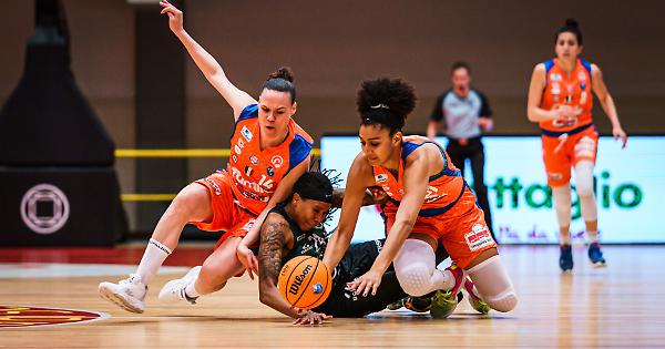 Un’altra gara vietata ai deboli di cuore al PalaRomare con le orange che hanno travolto la Molisana 87-63 ma solo nel secondo tempo. La gara, infatti, per venti minuti è stata all’insegna dell’equilibrio con Campobasso che ha fatto vedere i sorci verdi ad uno Schio nervoso che aveva trovato punti solo da Mabrey, Howard e Verona. Poi la svolta negli spogliatoi ed un terzo quarto perfetto (31-11) hanno cambiato volto alla squadra che si è scrollata la ruggine di dosso e ha offerto una pallacanestro superlativa che ha estasiato un PalaRomare affollato per le grandi occasioni. Il Famila Wuber se la suda ma strappa il biglietto per le semifinali scudetto e ora può finalmente concentrarsi sulle Final 4 di Eurolega di questo fine settimana. Famila Wuber Schio – La Molisana Campobasso 87-63 (14-16, 37-37, 68-48) Famila Wuber Schio: Mabrey 24, Bestagno 5, Mestdagh 11, Sottana 8, Verona 10, Howard 15, Crippa 0, Keys 8, Penna 0, Ndour 6 La Molisana Campobasso: Del Sole 2, Narviciute ne, Togliani 12, Kacerik 3, Trimboli 12, Quinonez 13, Melapie 0, Battisodo 0, Parks 1, Abdi 15, Scherf 5Edizione