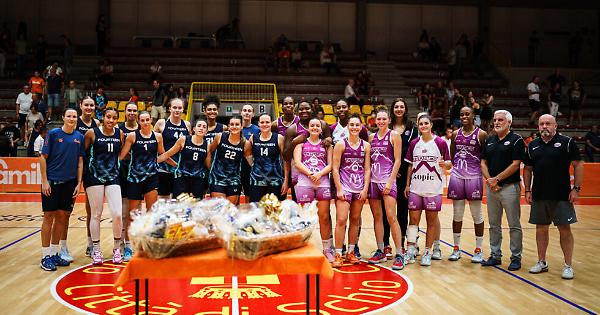 Nonostante fosse solo un torneo amichevole, Tarbes è la prima formazione in più di un anno a riuscire ad espugnare il PalaRomare. Una vittoria convincente delle francesi che hanno condotto il match sin dalle battute iniziali e non hanno praticamente mai permesso al Famila di rientrare. Schio, privo di Guirantes (tenuta precauzionalmente a riposo) non si è ancora del tutto ripreso dal virus intestinale che ha colpito tutta la squadra di rientro da Cagliari lunedì scorso. Le campionesse d’Italia rincorrono per tutto il primo tempo faticando a tenere i ritmi alti imposti da Tarbes che ha tanta fisicità dalla sua ma anche molta energia: Penna e Foppossi sono le protagoniste dei primi 5 minuti (10-11) prima che le ospiti trovino il primo vantaggio in doppia cifra per il 14-24 della prima sirena. Le orange (con la divisa da pre season color Tiffany) arrancano anche nei primi minuti della ripresa, esaurendo nuovamente presto il bonus ma trovando, nel finale di quarto, una reazione d’orgoglio per rosicchiare qualche punto con il gioco da tre punti di Keys (32-40 all’intervallo). Il Famila prova a spingere per recuperare lo svantaggio e riesce a riportarsi fino -6 ma due triple in serie di Malonga e Leite ricacciano le padrone di casa indietro a metà quarto. Schio mette insieme una serie di buoni tiri e si fa sentire a rimbalzo ma sbaglia molto a livello realizzativo finendo così la terza frazione sotto 47-61. Sottana e Keys si caricano la squadra sulle spalle ma il divario rimane in doppia cifra costante anche perché Yacoubou sotto canestro e Leite da fuori sono delle vere spine nel fianco della difesa scledense. Il finale sorride a Tarbes che si aggiudica il Trofeo del Cinquantenario con il risultato di 62-74. Famila Wuber Schio – Tarbes Gespe Bigorre 62-74 (14-24, 32-40, 47-61) Famila Wuber Schio: Mutterle 1, Bestagno 6, Sottana 12, Sivka 6, Verona 3, Guirantes ne, Crippa 6, Chagas 2, Keys 14, Penna 10, Reisingerova 2 Tarbes Gespe-Bigorre: Leite 22, Foppossi 8, Fora 2, Yacoubou 23, Droguet 6, Monase 0, Zodia ne, Malonga 13, Tomasicka ne