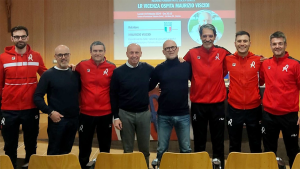 Data da ricordare quella di lunedì 19 febbraio per il progetto formativo rivolto alle Società Gemelle, percorso che coinvolge oltre 50 società del territorio, per un totale di circa 9000 tesserati, di cui quasi 8000 di puro settore giovanile. In una sala gremita, il coordinatore nazionali giovanili di Club Italia, Maurizio Viscidi, ha intrattenuto gli oltre 250 allenatori presenti dando loro tantissimi spunti interessanti per migliorarsi. Focus dell’incontro formativo è stata la finalizzazione del gioco negli ultimi 25 metri di campo, argomento molto caro a tutti i tecnici presenti, con mister Viscidi che ha proposto una serie di esercitazioni pratiche, utili a tutti gli allenatori in sala che hanno creato un positivo dibattito con il Responsabile di Club Italia. La serata ha visto gli allenatori del settore giovanile biancorosso seduti fianco a fianco agli allenatori delle Società Gemelle a sottolineare, ancora una volta, che il progetto verte a creare un unico grande settore giovanile, nel quale tutti si devono sentire partecipi della medesima realtà. A ribadire il predetto concetto, le parole del responsabile del settore giovanile biancorosso Michele Nicolin che ha evidenziato come le recenti presenze da titolari nella prima squadra dei ragazzi del vivaio, debbano essere motivo di vanto e di soddisfazione da parte di tutti e che serate come questa devono essere sfruttate appieno per alzare ulteriormente il proprio livello di competenza.