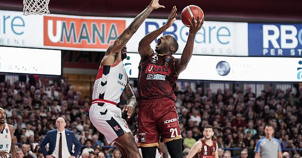 Nonostante un gran rientro nell'ultimo periodo, fino alla parità raggiunta a 1' dalla fine, l'Umana Reyer deve arrendersi in Gara1 di quarti playoff all'UNAHotels Reggio Emilia, alla fine corsara per 74-82 al Taliercio, dove si tornerà tra 48 ore per Gara2.Trascinata dalle triple di Galloway, Reggio parte fortissimo (0-8) con time out orogranata dopo 1'30”. Una schiacciata di Tucker sblocca dopo 2' l'Umana Reyer che, in un match molto fisico, si riavvicina sull'8-10 al 4'30”. La UNAHotels riprende però a colpire dall'arco, portandosi sul 14-21 al 19' ed è 18-24 al 10'. Reggio tocca di nuovo il +8 in apertura di secondo quarto (18-26), ma la reazione degli orogranazta, che alzano l'intensità difensiva, è importante: con un Wiltjer in grande evidenza, il break di 9-0 vale il primo vantaggio (27-26 al 13'30”). Anche gli ospiti infilano però uno 0-9 in risposta, con l'Umana Reyer che soffre la pressione difensiva degli avversari: al 16' è 27-35, anche per i molti rimbalzi offensivi (11 in 20') reggiani. E, nel finale di tempo, la UNAHotels ritrova anche la mira dall'arco, in particolare con Smith, che la trascina sul 34-42 al rientro negli spogliatoi.Nel quintetto iniziale del secondo tempo si rivede Casarin, che era uscito dopo appena 3'30” in seguito a due contatti piuttosto fisici subiti, ma è ancora Reggio a partire meglio, toccando al 21'30” il 34-47. L'Umana Reyer riparte dalla tripla di Spissu del 22' e, alzando il livello della difesa, al 23'30” è sul 42-37. In rapida successione vengono fischiati i terzi falli a Kabengele e Tessitori, che portano al bonus, ma Spissu, su assist di Tessitori, riesce a limare ancora un punto: 44-48 al 25'30”. Nel finale di periodo, dal 48-53 del 27' gli ospiti trovano l'allungo sul 49-60 al 29' e poi vanno all'ultimo intervallo breve avanti 53-62. Smith mette la tripla del 53-65 in avvio di ultimo quarto, ma poi spende antisportivo. L'Umana Reyer cerca Tessitori, che viene fermato quasi sistematicamente con il fallo, ma paga qualche errore dalla lunetta, riavvicinando comunque gli orogranata sul 59-65 al 32', subito dopo un errore arbitrale che risulterà determinante nel finale: un intervento corretto di Parks per togliere il pallone dal ferro viene inizialmente valutato come intercezione non corretta. L'intervento del primo arbitro Begnis corregge l'errore del collega, ma la palla viene affidata agli orogranata usufruendo della freccia. Reggio torna di nuovo a +9, fino al 63-72 del 36', con quello che però resterà a lungo l'ultimo suo canestro su azione. L'Umana Reyer riesce infatti a prendere finalmente in mano l'inerzia, lima punto su punto e, dopo due triple consecutive di Wiltjer, impatta a 74 al 39' con la schiacciata di Kabengele su assist di Parks al termine di un'azione con ottima circolazione. Smith mette i liberi del sorpasso a -53” poi, dopo il time out di coach Spahija, a -43” sull'attacco orogranata arriva la freccia che, dopo la precedente decisione, premia gli ospiti. E Smith, a -21”, mette la tripla che chiude i giochi, con il punteggio arrotondato infine dalla lunetta fino al 74-82.GIVE EMOTIONS SRL | C.F. e P.IVA 04385760287 REA PD-385156 | Reg. Tribunale di Padova n. 2516
