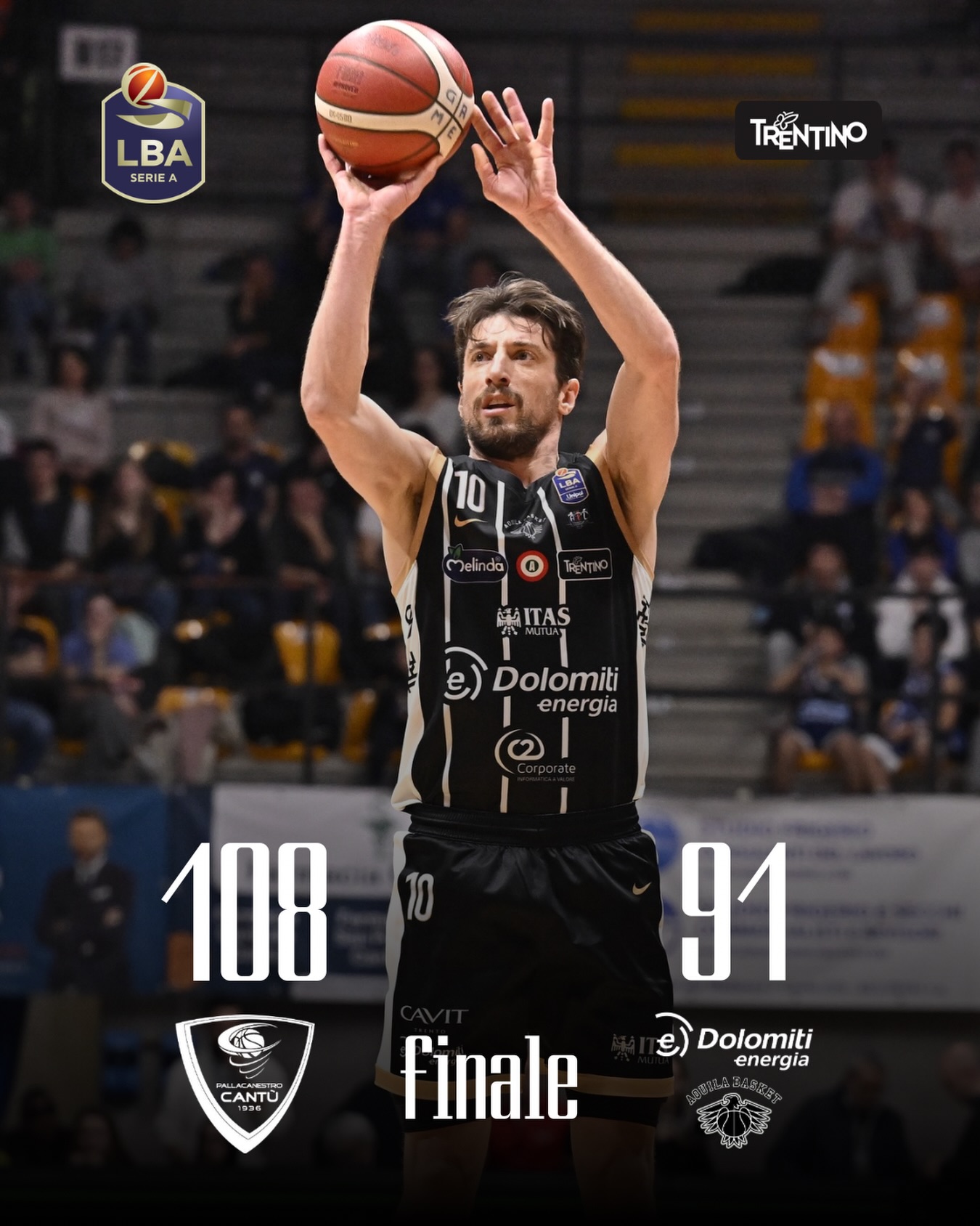 Una serata da dimenticare per la Dolomiti Energia Trentino, sconfitta nettamente al PalaDesio da una Pallacanestro Cantù in forma smagliante. Il match si è chiuso 108-91 a favore dei padroni di casa, che hanno fatto la differenza grazie a percentuali impressionanti: 56,8% da due e quasi 60% da tre punti.