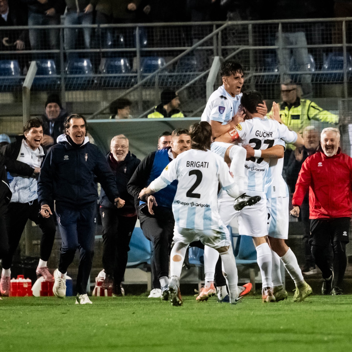 Un successo per 2-1 che ha il sapore di ipoteca, con il distacco tra le due rivali che è arrivato alla cifra quasi incolmabile di 16 punti. Dal capitano Robert Gucher, uno che di promozioni se ne intende, alla giovane stellina Daniel Perin, promesso sposo della Juve Stabia. Un passaggio di consegna tra due grandi protagonisti del centrocampo biancoceleste. Si tratta di due reti, una per tempo, che sanno di sentenza per i biancocelesti. Nel finale i lagunari ci hanno provato con tutte le proprie forze, ma il gol dell'ex Gnago non è bastato per orchestrare la rimonta. Tra i momenti più significativi la dedica di Robert Gucher all'infortunato capocannoniere del girone C di Serie D Gigi Scotto, leader offensivo della squadra: un'ulteriore testimonianza di quanto questo gruppo sia unito e coeso sin dal primo giorno.