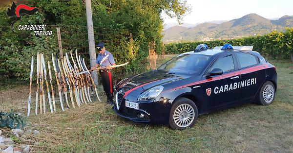Nella mattinata odierna i militari del Nucleo Operativo e Radiomobile della Compagnia di Montebelluna hanno rinvenuto i 29 archi trafugati tra il 4 ed il 7 settembre scorsi presso il Club “Archery” di Via Castellana a Montebelluna. I militari, impiegati in servizi perlustrativi per il contrasto ai reati predatori, hanno individuato la refurtiva del valore di circa3000€ presso un casolare abbandonato nelle campagne di Maser. Le indagini sono finalizzate anche a verificare se i malfattori abbiano abbandonato il maltolto in quanto disturbati nell’azione oppure avevano deciso di accantonare provvisoriamente il bottino per recuperarlo in un secondo momento. Attualmente sono in atto i rilievi da parte del Nucleo Operativo al fine di reperire indicazioni utili per identificare gli autori furto.