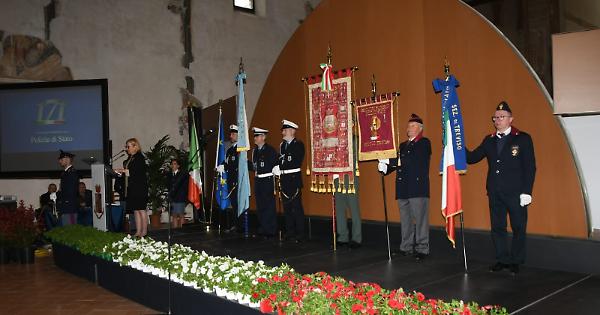 171esimo Anniversario di Fondazione nell’Auditorium del Museo Civico di Santa Caterina. La giornata è iniziata con la deposizione alla lapide in ricordo dei caduti in Questura di una corona da parte del Questore e del Prefetto, alla presenza dei funzionari e del personale e dei rappresentanti dell’Associazione Nazionale Polizia di Stato. La cerimonia, tenuta alla presenza delle Autorità, dei rappresentanti delle Istituzioni e di numerosi ospiti della provincia, è stata introdotta dall’Inno degli italiani, cantato dal Maestro Francesco Grollo, che ha coinvolto la platea, che coralmente si è unita al nostro grande tenore. All’evento hanno partecipato anche i ragazzi della seconda classe L dell’Istituto Comprensivo Serena, accompagnati dai loro insegnanti. Il Questore, nel suo intervento, ha voluto ringraziare tutte le donne e gli uomini della Polizia di Stato e dell’Amministrazione civile dell’Interno che in servizio presso gli Uffici della provincia, che ogni giorno onorano l’uniforme che indossano svolgendo il proprio servizio con professionalità e abnegazione, per tutelare il bene comune e far fronte e tutte le necessità che si presentano. La cerimonia si è chiusa con il ricordo dei poliziotti che hanno riportato ferite in servizio, dei caduti nell’adempimento del dovere e di quelli che ci hanno lasciato, vinti dall’età o andati via prematuramente. Dalle 09.00 e per tutta la mattina è stato attivo in Piazza dei Signori, in Piazza Indipendenza, e in Piazza Aldo Moro il villaggio della Polizia, con gli stand della Polizia Scientifica, della Polizia Stradale, del Nucleo Artificieri, della Questura, del Centro addestramento alpino di Moena, con l’unità cinofila di ricerca e soccorso, a disposizione della cittadinanza e di numerose scolaresche per illustrare l’attività delle varie articolazioni della Polizia di Stato e divulgare i valori della legalità e della sicurezza. In