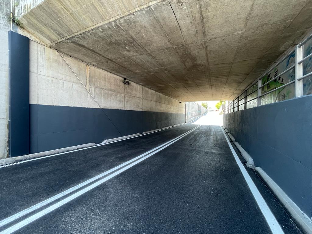 . L’intervento, per un costo complessivo di 130mila euro, ha riguardato la fresatura del manto stradale, la canalizzazione delle acque di falda tramite posa di pozzetti e tubi drenanti, l’idrolavaggio ad alta pressione, la passivazione delle armature sporgenti e il ripristino delle pareti, oltre alla riasfaltatura finale con segnaletica orizzontale.Edizione