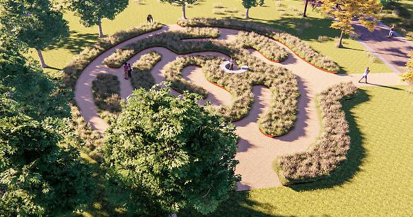 La parte centrale del parco verrà destinata al Labirinto Sensoriale, consistente in una serie di aiuole rialzate che ospitano vegetazione erbacea e un disegno delle aiuole tale da creare percorsi circolari a “labirinto”. Oltre all’ingresso principale saranno presenti due uscite secondarie che puntano nelle direzioni geografiche di Venezia e Monaco richiamando così le due direttive principali della rete ciclabile Parfum.