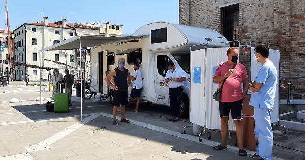 Sono state 50 le persone sottoposte a tampone e 113 quelle che hanno ricevuto la vaccinazione nelle due giornate in cui le Unità mobili dell’Ulss 3 Serenissima hanno operato, tra ieri e l'altro ieri, a Chioggia. Il camper vaccinale ha operato nella mattinata di l'altro ieri, 28 luglio, davanti ai Bagni Clodia e poi nella mattinata di oggi al mercato presso il Museo Civico. Tra le persone sottoposta a tampone, nessuna è risultata positiva. Chioggia riceverà di nuovo la visita delle Unità mobili nei prossimi giorni: è già fissato per la mattinata di mercoledì 4 agosto un nuovo appuntamento presso i Bagni Lungomare. (continua a leggere dopo la gallery)