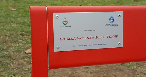 Nella giornata contro la violenza sulle donne il Comune di Padova e il Lions Club hanno installato una panchina rossa a Parco Iris. Installazioni anche a Palazzo Moroni e al Bo