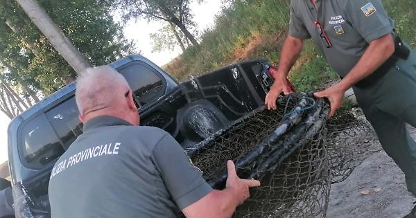 La polizia provinciale di Rovigo ha sequestrato delle reti abusive che sono riaffiorate dal fiume Po in secca