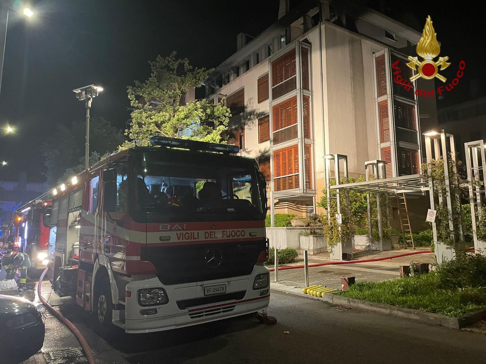 Un incendio divampato ieri nel pomeriggio a Conegliano ha costretto ad un lungo intervento i vigili del fuoco che dalle 17 sono intervenuti per spegnere le fiamme che sono iniziate al quarto piano di un edificio residenziale in via Guido Sinopoli. Per fortuna nessuna persona è rimasta coinvolta. Sul posto sono state impegnate oltre alle squadre di Conegliano, anche quelle di Vittorio Veneto e Treviso con tre autopompe, un’autobotte, un’autoscala e un carro aria per un totale di 22 operatori, coordinati dal funzionario di guardia. Le fiamme, sono state circoscritte e spente dalle squadre. Hanno interessato anche il tetto in legno: ingenti i danni subiti dagli appartamenti sottostanti. E' stato anche vacuato in via precauzionale l’edificio composto da otto appartamenti. E' ancora in corso la bonifica e la messa in sicurezza dell’area e gli accertamenti da parte dei tecnici dei vigili del fuoco, per indagare sulle cause del rogo. Sul posto anche i Carabinieri e la polizia locale.