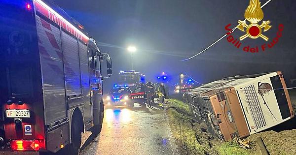 Un bus turistico è finito fuori strada nella notte di Capodanno, intorno alle 2.30, lungo via San Pio X, in località Passerella, al confine tra San Donà e Jesolo. A bordo del mezzo, un autobus a due piani, viaggiavano 79 persone, compresi i due autisti. Si trattava di turisti bosniaci. Per cause in fase di accertamento, il bus è finito rovesciato su un fianco: oltre 30 persone rimaste ferite, sulle 79 presenti a bordo, compresi i due autisti. I vigili del fuoco sono arrivati sul posto dal locale distaccamento, da Jesolo e Mestre. I pompieri hanno messo in sicurezza il bus adagiato su un fianco e finito di estrarre tutte le persone ancora presenti all’interno.