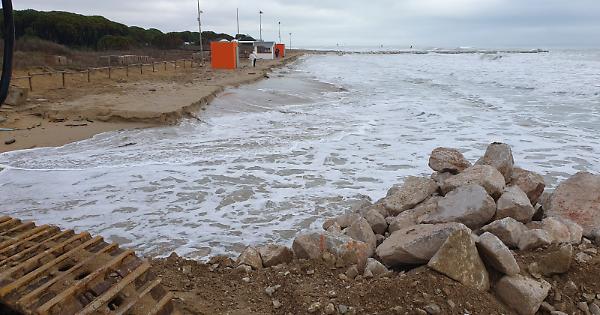 Spinto dallo scirocco, il mare ha eroso circa 2 km di arenile. Intanto il Comune ha stanziato mezzo milione per il ripascimento