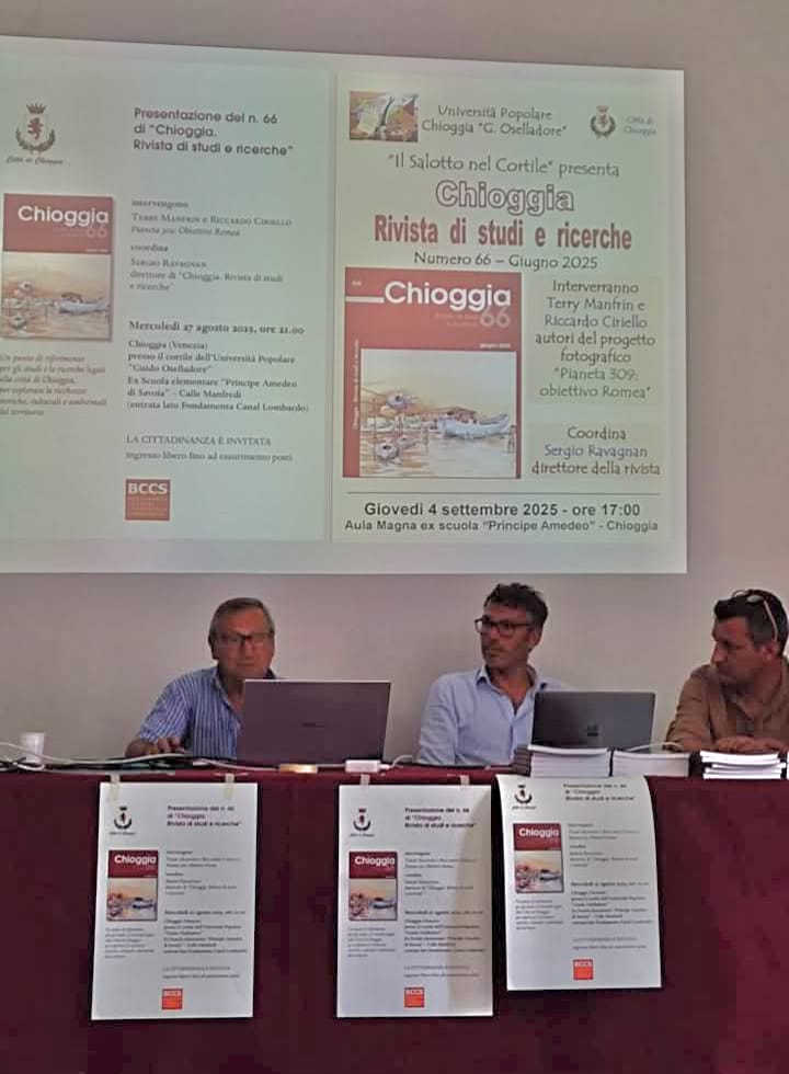 Il nuovo numero 66 della Rivista “Chioggia” è stato presentato il 4 settembre 2025 nell’ex scuola elementare “Principe Amedeo” nell’ambito degli incontri estivi “Il salotto nel cortile” promossi dall’Università Popolare “Guido Oselladore” dove sono intervenuti Terry Manfrin e Riccardo Ciriello e il neodirettore Sergio Ravagnan. (e.f.)