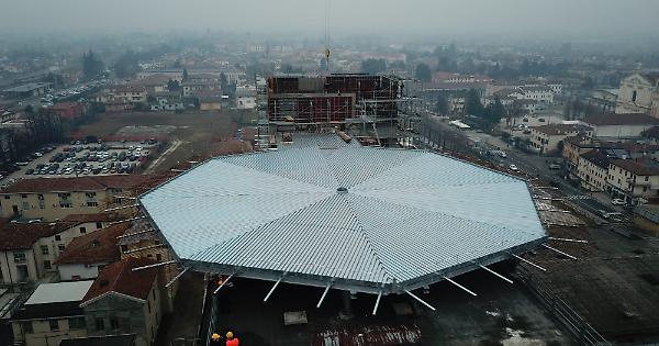 La nuova elisuperficie dell'Ospedale “Pietro Cosma” di Camposampiero è un maestoso ottagono d'acciaio, con 24 metri di diametro e 41,5 di altezza. Struttura realizzata in stabilimento e giunta in loco a blocchi, ha richiesto una accurata lavorazione a piè d'opera, quindi un intervento "volante" ardito con l'ausilio di due mega-gru. Montata e assemblata nelle ultime due settimane dopo oltre due anni di attività edilizia propedeutica, adesso ci si dedicherà all'impiantistica e alle finiture. Entro giugno l'opera entrerà in attività.