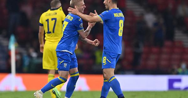 Nel primo tempo va subito vicino al gol all'11' l'attaccante ucraino Yaremchuk, e al 26' Zinchenko va in gol su azione battendo il portiere svedese Olsen con un diagonale.