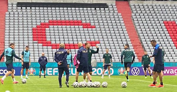 L'allenamento degli azzurri la sera del primo luglio 2021 a Monaco di Baviera
