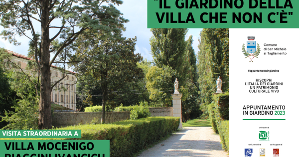 Il complesso architettonico di Villa Mocenigo Biaggini Ivancich a San Michele al Tagliamento partecipa all'edizione 2023 di "Appuntamento in Giardino" proponendo nella giornata di domenica 04 giugno una visita straordinaria con la guida Mariangela Flaborea (TVO srl). La visita, a cui sarà possibile prendere parte gratuitamente previa prenotazione obbligatoria, avrà luogo a partire dalle 10:30, con una durata di 60 minuti circa. La richiesta di prenotazione può essere inoltrata via mail contattando l’Ufficio IAT di Bibione (iat@comunesanmichele.it) o l’Ufficio Turismo del Comune (turismo@comunesanmichele.it) "Appuntamento in Giardino" è un'iniziativa promossa dall'APGI Associazione Parchi e Giardini d'Italia con il patrocinio del Ministero della Cultura e di Anci. Pensata come un’autentica "festa del giardino", la manifestazione ha l’obiettivo di invitare il grande pubblico a scoprire la sorprendente ricchezza storica, artistica, botanica e paesaggistica dei giardini italiani. Un’occasione per far conoscere giardini normalmente chiusi e per arricchire le possibilità di fruizione dei giardini regolarmente aperti con eventi e attività.