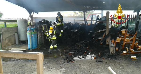 L'incendio si è sviluppato poco prima delle 17 di sabato 20 maggio a Portogruaro, all'esterno di un'azienda di prefabbricati