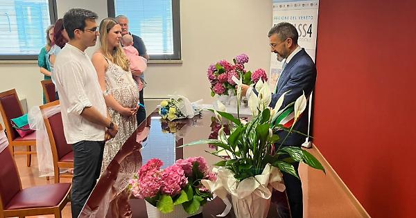 Che fare? Il matrimonio non si poteva rimandare ad altra data, visto il giorno simbolico. E allora la dirigenza di Ostetricia dell'ospedale di San Donà ha deciso di allestire il reparto di tutto punto, per far celebrare le nozze. In ospedale è arrivato anche il sindaco Alberto Teso, che ha unito in matrimonio la sposa. Oltre ai due sposi erano presenti i familiari e i testimoni. Presente anche il direttore del reparto di Ostetricia, Marika Soldà, e il personale infermieristico, che ha seguito da vicino la paziente ormai prossima al parto.Edizione