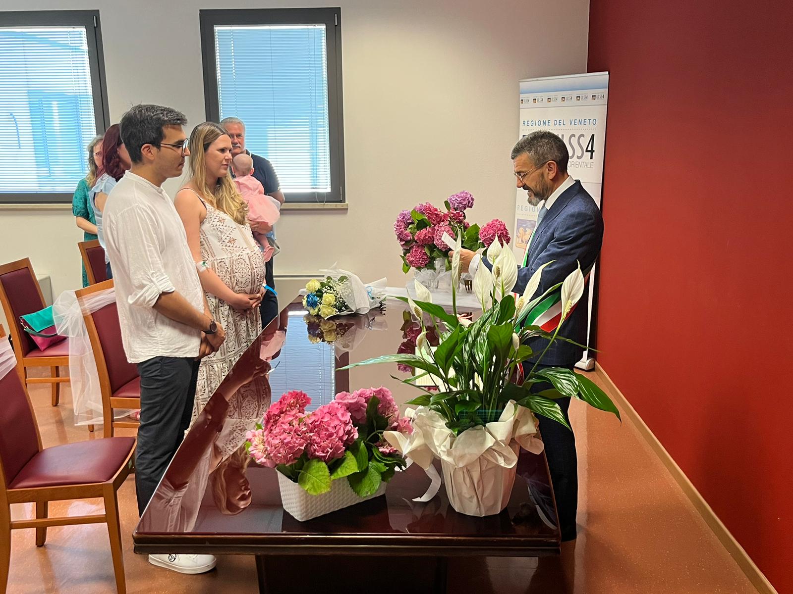 Chissà se, appena eletto, il neo sindaco di San Donà, Alberto Teso, avrebbe immaginato di celebrare un matrimonio nel reparto di ostetricia dell'ospedale cittadino. E' accaduto oggi, giovedì 15 giugno. A convolare a giuste nozze sono stati Francesca Battiston e Andrea Brunetta. Residenti a San Donà, Francesca e Andrea si sono fidanzati esattamente cinque anni fa. Per il loro matrimonio avevano scelto come data simbolica quella di oggi, in cui cadeva il quinto anniversario del loro fidanzamento. Una data simbolica, per cui da tempo era stata fissata la data in municipio. Ma il destino, in questo caso nelle vesti di uno splendido nascituro, ci ha messo lo zampino. La futura sposa, incinta e ormai alle ultime fasi prima del parto, è stata infatti improvvisamente ricoverata oggi in ospedale.