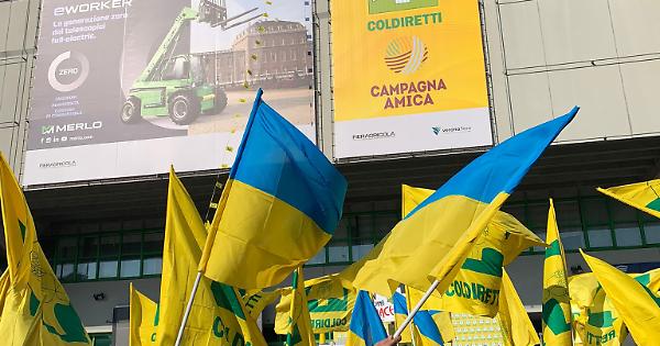 Coldiretti ha organizzato a Verona un flash mob contro la guerra in Ucraina. Le conseguenze del conflitto si fanno sentire sul settore agroalimentare