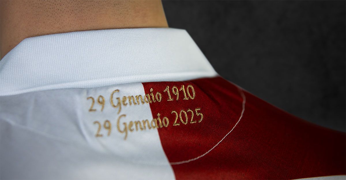 La maglia celebrativa presenta un design vintage con il classico collo a polo bianco e una suddivisione verticale dei colori: rosso a destra, bianco a sinistra, con maniche invertite. Il tessuto sublimato esalta il look retrò, mentre il logo dell’AC Padova in versione storica e il Macron Hero ricamato in rosso bordato oro aggiungono eleganza. Sul retro del colletto, due date ricamate in oro – 29 gennaio 1910 e 29 gennaio 2025 – ricordano il lungo percorso del club.