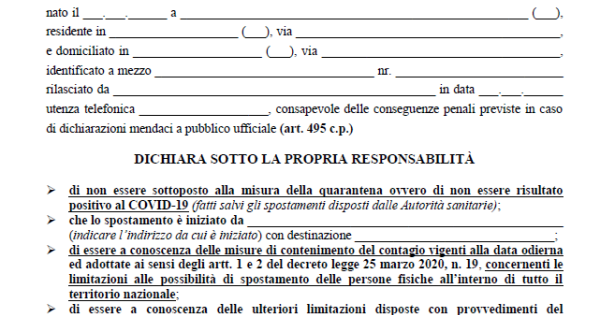 Il modulo deve essere presentato in casi d controllo da parte delle forze dell'ordine per giustificare i propri spostamenti