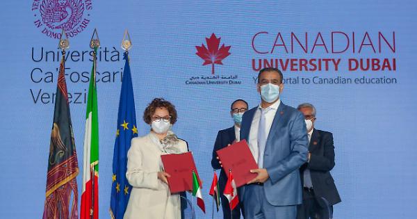 L'Università Ca' Foscari Venezia a Dubai ha siglato due nuovi accordi di collaborazione con l’American University in Dubai e la Canadian University Dubai: si intensificano così le opportunità di mobilità internazionale per studenti, studentesse, docenti e personale e si pongono le basi per lo sviluppo di una collaborazione di lungo periodo negli ambiti della ricerca e dell'educazione. L’accordo è stato firmato da Tiziana Lippiello, rettrice dell’Università Ca’ Foscari, in occasione di "Veneto Beyond the Future", la giornata che Italy Expo 2020 ha dedicato al Veneto per far conoscere la nostra regione negli Emirati Arabi e valorizzarne alcuni aspetti legati al futuro e all'innovazione. La rettrice dell’università veneziana, Tiziana Lippiello, ha partecipato a "Veneto Beyond the Future" in qualità di Presidente della Fondazione Univeneto.
