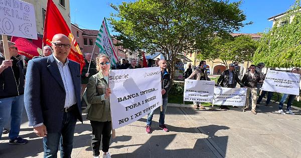 "Banca Intesa fora i schei", a Mestre la manifestazione dei lavoratori di Superjet con gli stipendi congelati per le sanzioni: la società è al 90% russa