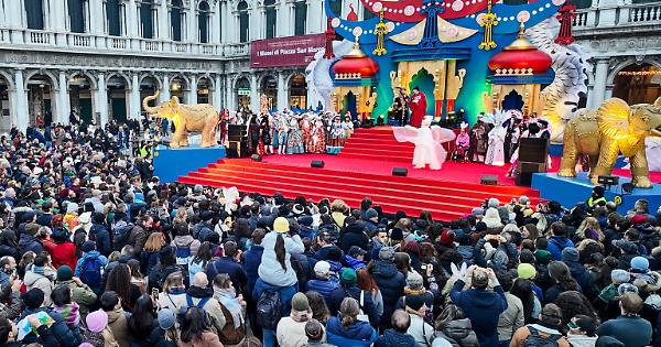 Sarà un giovedì grasso costellato di appuntamenti, quello che attende oggi, 8 febbraio, il pubblico del Carnevale di Venezia. Alle 16, sul palco di Piazza San marco, alle ore 16.00, verrà rievocato il Taglio della Testa del Toro, a cura dell’Associazione “Compagnia L’Arte dei Mascareri”, che riprende e interpreta l’antico aneddoto nel giorno di giovedì grasso dell’anno 1162 in cui si celebrava la vittoria del doge Vitale Michiel II sul Patriarca Ulrico di Aquileia con i 12 feudatari ribelli. A Pellestrina invece, a partire dalle ore 15.00, si potrà partecipare alla sfilata “statica” messa a punto dall’associazione Catene 2000, Vela spa e Città in Festa oltre al supporto della Proloco di Lido Pellestrina. Tornano poi le sfilate delle Maschere più belle a San Marco e in Piazza Ferretto e gli spettacoli diffusi nel cuore di Mestre, in laguna e nelle Municipalità con il Venice Carnival Street Show, capace di incantare un pubblico di tutte le età. A Venezia, dalle 14.30 alle 18.00 giocolieri e clown in Campo Santa Margherita e in Campo San Giacomo dall’Orio, equilibristi e musica dalle terre del Milione a Esedra Castello; trampolieri, spettacoli di fuoco e magia in Campo San Geremia, l’artista capovolto e acrobazie in Campo Santa Maria Formosa; clown e improvvisazione in Campo San Cassiano. Il Venice Carnival Street Show salirà anche sul palco di Piazza San Marco alle 11.30, alle 17.00 e alle 18.00. In Piazza Ferretto, dalle 15.30 alle 19.00 arrivano spettacoli di arti varie, clown e giocolieri; inoltre per tutto il pomeriggio nelle vie limitrofe ci saranno show itineranti di musicisti e trampolieri. Spettacoli anche a a Marghera in Piazza Mercato dalle ore 17.00, a Chirignago al Centro Sportivo Montessori alle ore 16.30 e a Burano in Piazza Galuppi dalle ore 16.00. L’arte della Commedia, curata dalla Compagnia Pantakin, salirà sul palco di Piazza San Marco, alle 14.00 e alle 16.00, con lo spettacolo “Quando Katai l’amore in Katai”, e alle 15.00 con “Pulcinella racconta Romeo & Giulietta”, mentre in Campo Santo Stefano alle 11.00 e alle 14.30 andrà in scena “Il mascheraio”, alle 12.30 e alle 15.30 “La rivalsa delle streghe”. Torna anche il Water Show “Terra Incognita” all’Arsenale, un racconto immaginifico – con la direzione artistica di Massimo Checchetto, ideazione e regia di Enrica Crivellaro - che emerge dalle acque della Darsena Grande, liberamente ispirato a “Il Milione” di Marco Polo e narrato in chiave fantastica attraverso i diversi linguaggi creativi dell’arte che, come il viaggio di Marco, non conosce confini. Info su questi e molti altri appuntamenti sul sito https://www.carnevale.venezia.it/Edizione