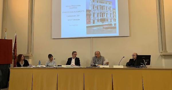Aula Magna dell'Istituto Francesco Algarotti di Venezia gremita, sabato 4 maggio per la giornata celebrativa dei 260 anni dalla morte del viaggiatore, divulgatore e brillante intellettuale veneziano che ha dato il nome alla scuola a lui dedicata 62 anni fa. Per l'occasione è andato in scena il convegno dal titolo "Francesco Algarotti, che tipo!" in cui anche gli studenti hanno avuto parte attiva. Ma chi era Francesco Algarotti? Nato a Venezia nel 1712, studiò in varie città, fu scrittore, saggista e collezionista d'arte italiano, polimate, filosofo, poeta. Spirito illuminista, anglofilo, erudito dotato di conoscenze che spaziavano dal newtonianismo all'architettura, alla musica, era amico delle personalità più grandi dell'epoca: Voltaire, Jean-Baptiste Boyer d'Argens, Pierre Louis Moreau de Maupertuis, Julien Offray de La Mettrie. Tra i suoi corrispondenti vi erano Lord Chesterfield, Thomas Gray, George Lyttelton, Thomas Hollis, Metastasio, Benedetto XIV, Heinrich von Brühl, Federico II di Prussia. Morì a Pisa nel 1764. A presentare la sua figura, introdotti dal Dirigente Scolastico Diego Bottacin, i professori Klaus-Werner Haupt e Sebastiano Amato che hanno effettuato un excursus scientifico sulla figura di Algarotti, la prof.ssa Cristina Cortese che ha ricordato l'importanza a quel tempo del "Quaderno di viaggio" utilizzato dagli intellettuali stranieri che venivano in Italia per il loro "grand tour" e fissare in questo modo i ricordi e le sensazioni di quanto ammirato nel Belpaese. Ma gli studenti, forti delle loro esperienze nel campo delle nuove tecnologie digitali, hanno coinvolto tutti i presenti innanzitutto con un questionario online da compilare smartphone alla mano con cui ognuno ha potuto misurare il proprio grado di affinità con l’illustre veneziano e un video in cui è stata inscenata una suggestiva intervista immaginaria tra alcuni studenti e il fantasma di Algarotti, tra le calli di Venezia, la Biblioteca di San Francesco della Vigna, la sua casa natale e la scuola stessa. Al termine della mattinata uno degli allievi, Alessandro Barbiero, ha donato alla scuola un quadro olio su tela raffigurante Algarotti, ripreso da un'opera del pittore Jean-Etienne Liotard del 1745. La bellezza e la cura nei dettagli ha stupito tutti. Soddisfatto il preside Bottacin: "Ho visto una scuola in grado di produrre cultura, innovazione, l'interpretazione di quanto studiano con gli strumenti digitali. Mi sono divertito, mattinata curiosa, sorpreso di tanti talenti insospettati come l'autore del quadro. Algarotti è stato un personaggio moderno e precursore di vari aspetti della contemporaneità e da oggi guida ancora di più il nostro lavoro di formare ragazzi curiosi con voglia di viaggiare e imparare". Riccardo Musacco