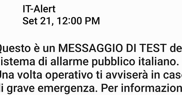 La Direzione della Protezione Civile del Veneto, su indicazione del Dipartimento Nazionale di Protezione Civile, comunica che martedì 26 settembre alle ore 12.00 i telefoni cellulari in Provincia Autonoma di Trento saranno raggiunti da un messaggio di test IT-alert, il nuovo sistema di allarme pubblico nazionale. Tutti i dispositivi agganciati a celle di telefonia mobile nel territorio trentino suoneranno contemporaneamente, emettendo un suono distintivo diverso da quello delle notifiche a cui siamo abituati. In relazione alla vicinanza territoriale delle province di Belluno e Verona è possibile che alcuni dispositivi aggancino il segnale proveniente da oltre confine regionale, ricevendo quindi i messaggi di test del sistema di allarme pubblico. Come accaduto nel caso del test effettuato in Veneto lo scorso 21 settembre, chi riceve il messaggio di test non ha nulla da temere, e non dovrà fare nulla tranne leggere il messaggio. L’invito per tutti, che abbiano ricevuto correttamente il messaggio o meno, è ad andare sul sito it-alert.it e rispondere al questionario: le risposte degli utenti infatti consentiranno di migliorare lo strumento.
