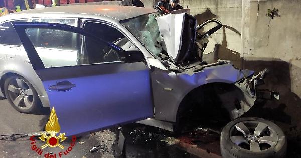 L’auto hainvaso la corsia opposta finendo prima sul marciapiede e poi contro il muro.
