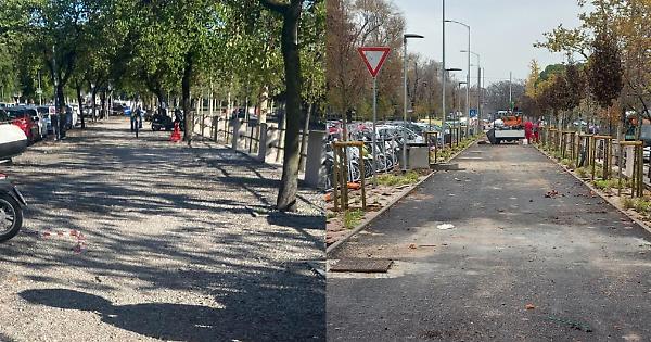 Allargato anche lo spazio a disposizione delle auto, con nuovi posti collocati a lisca di pesce. Sistemata invece all’esterno del marciapiede l’area di sosta per i motorini.